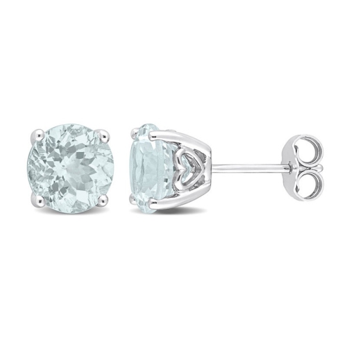 Add sparkle to your look with these Aquamarine Solitaire Stud Earrings. Mounted in sparkling sterling silver, they feature two round-cut, 4 prong-set, aquamarine gemstones (8x8mm) studded in a classic basket setting. Polished to a brilliant shine, these dazzling earrings fasten with butterfly closures. Create a buzz when you wear these solitaire stud earrings. Aquamarine is the featured birthstone