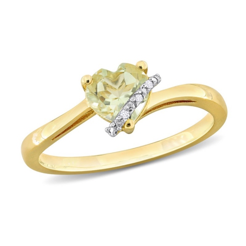 3/4 Carat (ctw) Green Quartz Heart Ring in Yellow Plated Sterling Silver