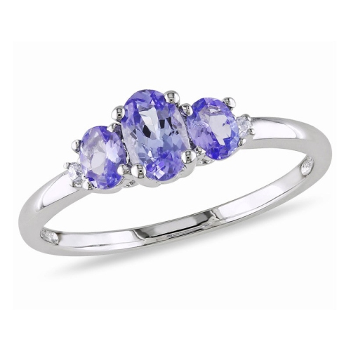 This Tanzanite and Diamond 3-Stone Ring, is the perfect piece to accentuate your look. Crafted in lustrous 10 karat white gold, this ring features 3 oval-cut purple tanzanite gemstones at its the center, while a diamond accents add a tiny bit of sparkle on each side of the band.