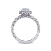 Tie the eternal bond with this elegant aquamarine and diamond halo ring. Crafted in sparkling 14-karat white gold, this classic ring features a round prong set clear light aquamarine gemstone (6x6mm) at the center and 68 round pave set diamonds (H-I, I2-I3). With a polished finish this aqua twist ring featured the March bithstone.