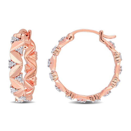 3/4 Carat (ctw) White Topaz Hoop Earrings in Rose Plated Sterling Silver