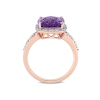 3.50 Carat (ctw) Amethyst Cushion Cut Ring in 10K Rose Pink Gold with Diamonds