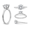 Crisp 14 karat white gold is set with a 3.50 carats (ctw) 10mm synthetic moissanite gemstone in this classic solitaire engagement ring. Moissanite is a gemstone with extraordinary durability and brilliance. Moisannite is the perfect replacement for a diamond and comparable to or even surpassing the clarity, and color of a diamond. This solitaire engagement ring includes a True Light moissanite rou
