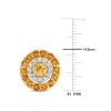 Add some color and shine to your wedding outfit with these captivating pair of double halo button stud earrings. Crafted in lustrous yellow gold plated sterling silver, these dainty earrings feature two round-cut, prong-set citrine gemstones (5x5mm) at the center surrounded by 28 round-cut, prong-set Madeira citrine gemstones (2.5x2.5mm) and 24 round-cut, prong-set white topaz gemstones (1.75x1.75