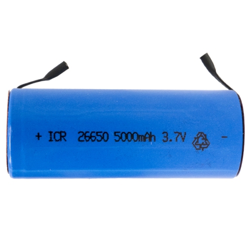 3.7 Volt 26650 Li-Ion Battery with Tabs (5000 mAh).