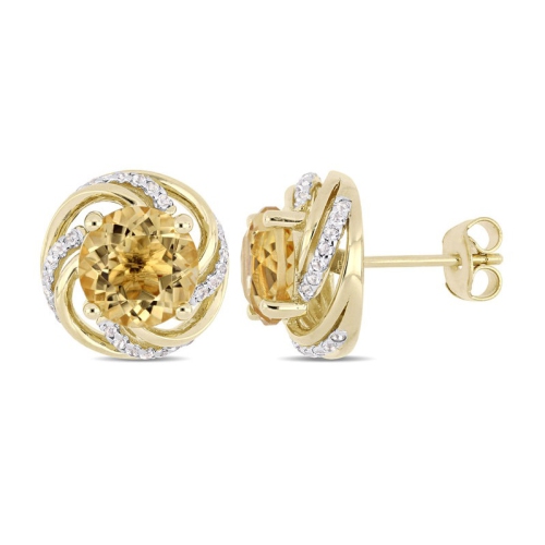These trendsetting gemstone swirl stud earrings are crafted in yellow plated sterling silver and feature two round prong-set twinkling yellow citrines at the center with 56 round buttercup set sparkling white topaz stones set together in a stunning swirl motif, perfect for all occasions. These gorgeous earrings are a perfect versatile addition to any ensemble, from business casual to formal wear.