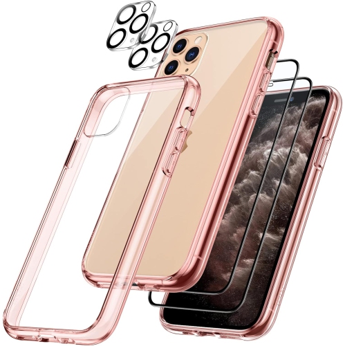[3-in-1 Full Protection] Exclusively fit iPhone 11 Pro 5.8-inch. This bumper case with 2-pack tempered glass screen protectors and 2-pack camera lens protectors provides all-around protection for your phone. NOT FOR: iPhone 11 / iPhone 11 Pro Max[Shockproof & Protective] The phone case is made of shockproof TPU frame and hard clear PC back, which is highly scratch-resistant and drop-proof. Moreover, four corners of case effectively absorb shocks and bumps[Focus on Details