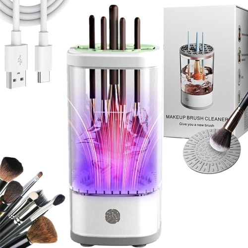 3-in-1 Electric Automatic Makeup Brush Cleaner, Portable Makeup Brush Dryer, UV Sterilizer (Transparent White)