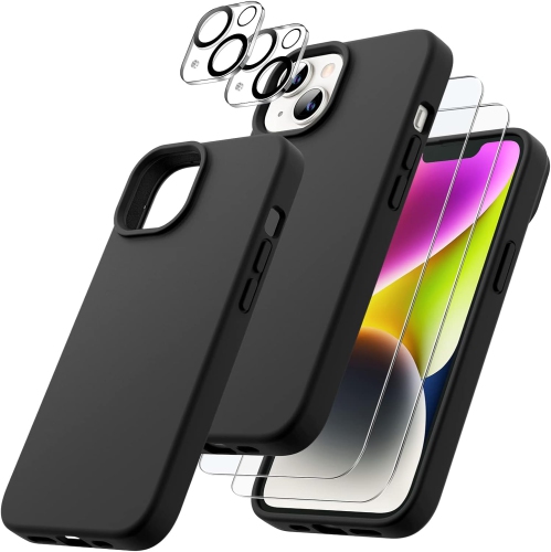 3 in 1 Silicone Case for iPhone 14 6.1-Inch, with 2-Pack Screen Protector and 2-Pack Camera Lens Protector, Full