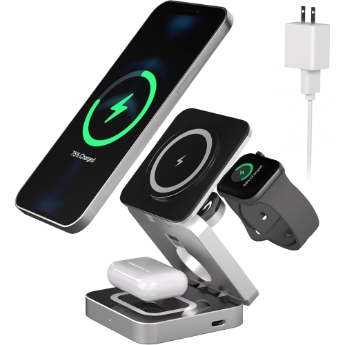 3 in 1 Wireless Charging Station for iPhone, Adjustable Magnetic Wireless Charger, Foldable Travel Charging Stand