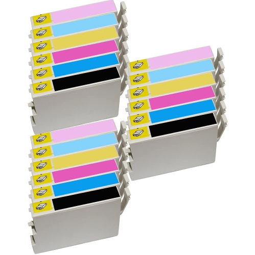 • Inkfirst® Compatible Ink Cartridges replacement for Epson 48 ink cartridges ( T048120 / T048220 / T048320 / T048420 / T048520 / T048620 ) • Contains 18 Ink Cartridges ( 3 x Black, 3 x Cyan, 3 x Magenta, 3 x Yellow, 3 x Light Cyan, 3 x Light Magenta ) • Up to 650 Page Yield for Black / 650 Page Yield for each Color at 5% Coverage