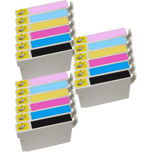• Inkfirst® Compatible Ink Cartridges replacement for Epson 98 ink cartridges ( T098120/T098220/T098320/T098420/T098520/T098620 - High Capacity ) • Contains 18 Ink Cartridges ( 3 x Black, 3 x Cyan, 3 x Magenta, 3 x Yellow, 3 x Light Cyan, 3 x Light Magenta ) • Up to 580 Page Yield for Black / 580 Page Yield for each Color at 5% Coverage