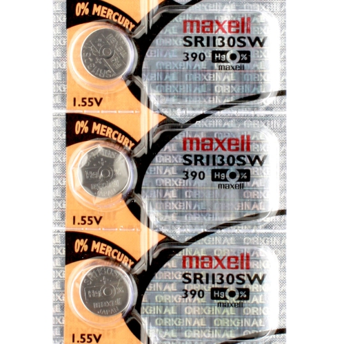 3 x Maxell 390 Watch Batteries, SR1130SW or 389 Battery