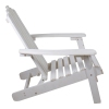 White folding wooden Adirondack chair. Deep seat creates a cradling feeling. Weather resistant allows you to use both indoors and outdoors