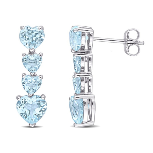 These glamorous heart dangle earrings are crafted in 10-karat white gold. These gorgeous drop earrings feature eight heart-cut, prong-set sky blue-topaz gemstones set in a journey style. Enhanced with a high polish finish, these bold graduated earrings are secured with butterfly backs. This design will add a stylish look to your wardrobe. A perfect addition to any collection; these lovely classic