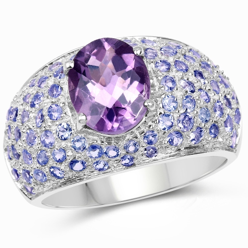 4.21 Carat Genuine Amethyst and Tanzanite .925 Sterling Silver Ring