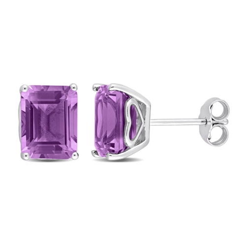 4.40 Carat (ctw) Amethyst Emerald-Cut Stud Earrings in Sterling Silver