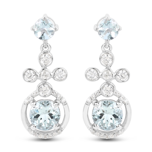 4.42 Carat Genuine Aquamarine and White Zircon .925 Sterling Silver Earrings