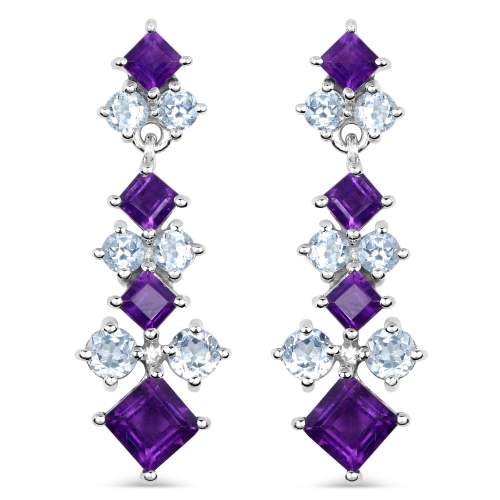 4.94 Carat Genuine Amethyst & Blue Topaz .925 Sterling Silver Earrings