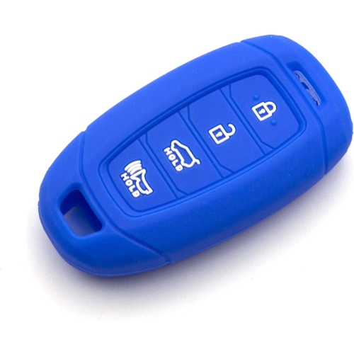 4 Button Silicone fob Remote Smart Key Case Protector Cover Accessories Compatible with Hyundai 2018 2019 2020 Kona Elantra GT i30 Tucson Santa Fe Azera Santa Fe Veloster (Blue)