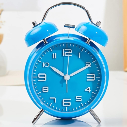 4-inch double bell alarm clock bedside children's clock metal creative table clock home decoration (blue)