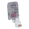 Decorative red and green Christmas night light. Plugs into any standard 120 V outlet; Includes on/off switch on base. Features a red car with a Christmas tree in the back