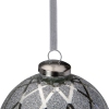 Silver glass ball ornament. Diamond shape glitter design. Comes ready to hang on a silver cord