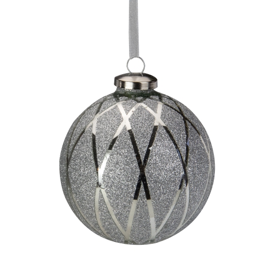 4" Silver Glitter Diamond Pattern Glass Ball Christmas Ornament