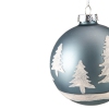 4" Slate Blue with Glittered Trees Glass Ball Christmas Ornament