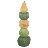 Fall harvest stacked pumpkin decoration. Freestanding stack of five pumpkins with stems. Pumpkins are positioned vertically and horizontally