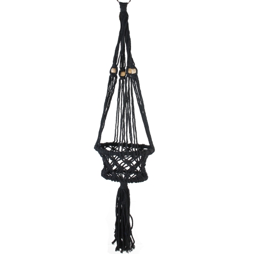 Black lattice pattern macrame hanging planter. Metal ring at the top for easy hanging. Recommended for indoor decorative use only