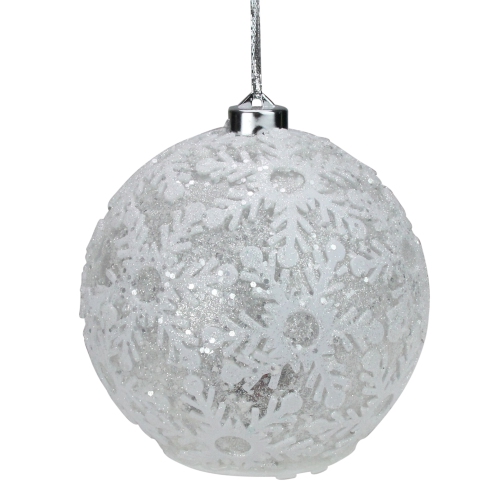 4ct Battery Operated Pre-Lit Silver Glitter Snowflake Christmas Ball Ornaments 6" (150mm)
