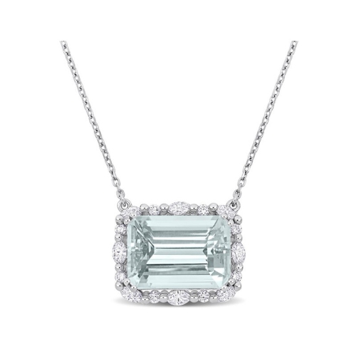 If you are looking for something minimal, gorgeous yet versatile then this aquamarine with marquise and round diamond halo necklace is the perfect choice. This gorgeous necklace is crafted in lustrous 14-karat white gold and features one octagon-cut aquamarine gemstones surrounded by round-cut and 16 marquise-cut, prong-set (G-H-I, SI) diamonds in a halo pattern for a beautiful look. This striking