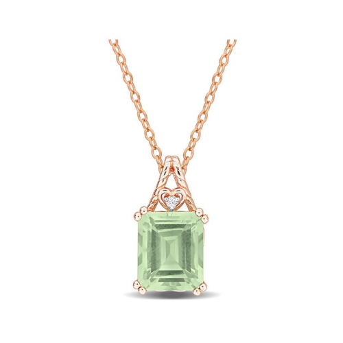Experience the captivating charm of this pink silver and green quartz with white topaz pendant necklace, a true embodiment of style and elegance. The centerpiece features a captivating 5.6 carat (ctw) total gem weight green quartz gemstone with an octagon-cut, radiating a mesmerizing green hue that captures attention. Complementing its beauty, sparkling white topaz gemstones create delicate heart