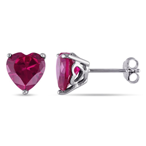 5.65 Carat (ctw) Lab-Created Ruby Heart Solitaire Earrings in Sterling Silver