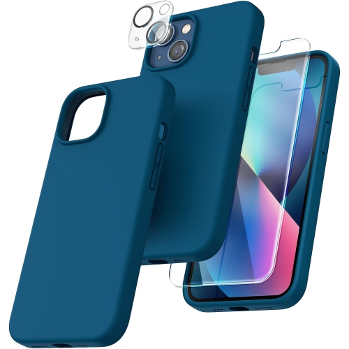 [5 in 1] for iPhone 13 Case, with 2 Pack Screen Protector + 2 Pack Camera Lens Protector, Slim Liquid Silicone