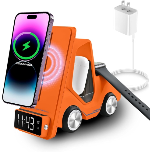 5 in 1 Wireless Charging Station 20W Adapter Fast Wireless Charging Apple Devices for iPhone 15/14/13/12 Series AirPods Pro/3/2,for Apple Watch/iWatch Support Alarm Clock Light