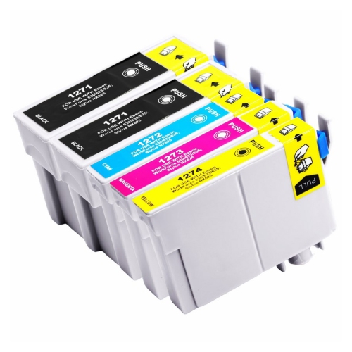 5 Pack 2BK/C/M/Y Ink Cartridge replacement for Epson T127 Compatible with: · Stylus NX530 Stylus NX625,WorkForce 54,WorkForce 60,WorkForce 630,WorkForce 633,WorkForce 635,WorkForce 645,WorkForce 840,WorkForce 845,WorkForce WF-3520,WorkForce WF-3530,WorkForce WF-3540 ,Workforce WF-7010,WorkForce WF-7510,WorkForce WF-7520 Yield: BK 945 C/M/Y: 755 @5% Coverage