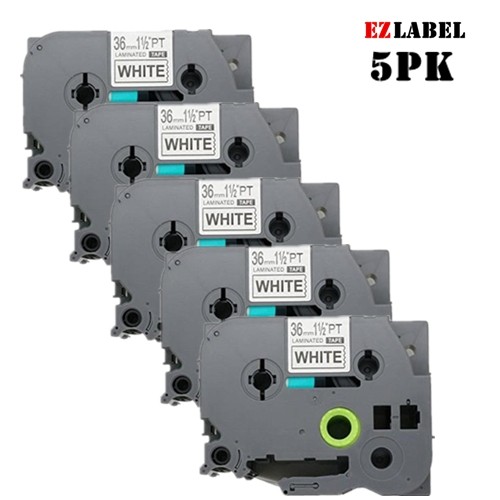 5 PK EZlabel TZE261 TZE-261 compatible Black on white laminated tape for Brother P-Touch printer, 36mm x 8m