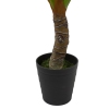Decorative artificial taro leaf potted plant. Dark green wide leaves with a thick trunk. Housed in its own black pot with moss