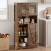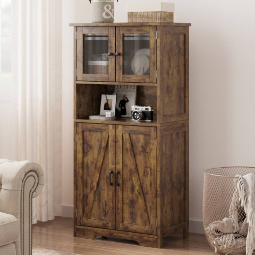 This 54" hutch offers spacious storage with adjustable shelves and glass doors, perfect for pantry items or living room essentials. Its rustic brown finish blends with any decor. Crafted from quality wood for durability, it ensures easy, dust-protected access—ideal as a bar cabinet, pantry, or stylish storage in any room.