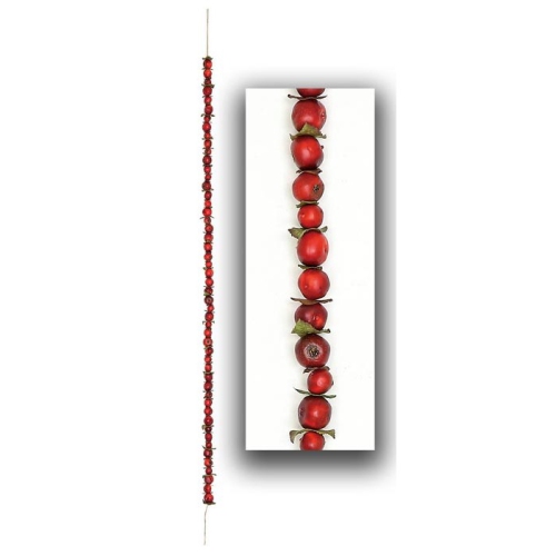 Red and white crabapple Christmas garland swag. Light and dark realistic perfect decor piece. Green metal hook at the top for easy hanging