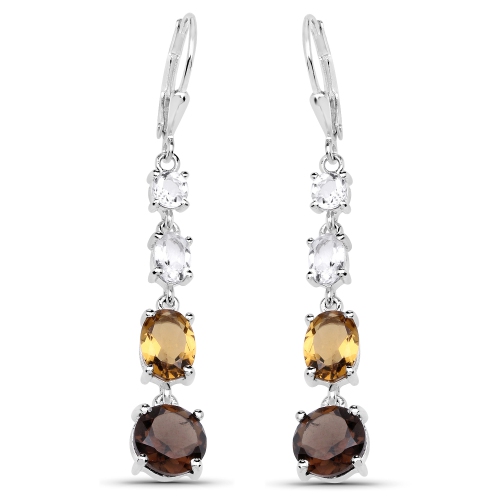 6.28 Carat Genuine Crystal Quartz, Champagne Quartz and Smoky Quartz .925 Sterling Silver Earrings