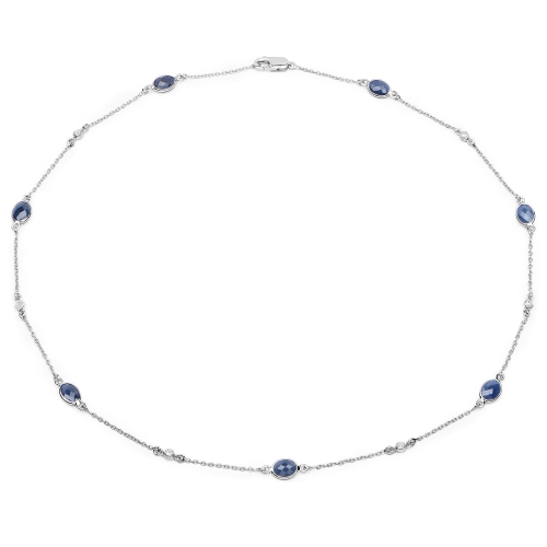 6.43 Carat Genuine Blue Sapphire and White Diamond .925 Sterling Silver Necklace
