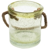 Yellow handblown glass candle holder with a jute handle. Bubble glass creates an effervescent effect. Ideal for use with battery operated LED candles