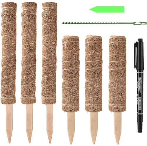 6 Pcs Moss Pole Plant Support 15.7 Inch and 12 Inch, Coir Totem Moss Pole for Climbing Plants
