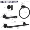 6-Pieces Matte Black Bathroom Hardware Set, Includes 16 Inch Towel Bar, Towel Ring, Toilet Paper Holder, 3 Pieces Robe Hooks, Wall Mounted