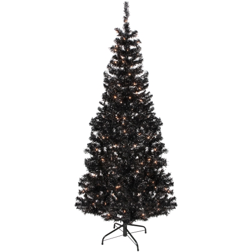 6' Pre-Lit Black Artificial Tinsel Christmas Tree, Clear Lights