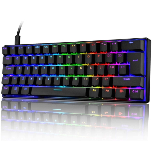 60% Mechanical Gaming Keyboard Mini Portable with Rainbow RGB Backlit Full Anti-Ghosting 61 Key Ergonomic Metal Plate Wired Waterproof for Typist Laptop Gamer (Black/Brown Switch)