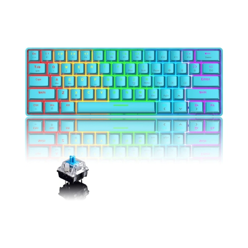 60% Wireless Mechanical Gaming Keyboard with Rainbow RGB Backlight Compact 61 Key Ergonomic Rechargeable Anti-ghosting Bluetooth 5.0 Type-C USB Wired, Blue/Blue Switch